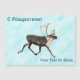A bull caribou, or reindeer, on a snow background image. Cyrillic (Russian) text reading "С Рождеством" (S Rozhdestvom - A Russian Christmas greeting) also appears. Add your own additional text.