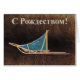 Out on the trail on Christmas Eve. Features a dog sled with a teal sled bag superimposed on a digital rendering of caribou (reindeer) fur. Cyrillic text reading "S Rozhdestvom" (С Рождеством - A Russian Christmas greeting) appears and you may personalise the card by adding a bit of text on the sled bag.