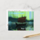A slightly stylised image of a Viking longship sailing at night under the Northern Lights, there a couple of icebergs; most of the crew is asleep. Cyrillic text reading "С Рождеством" (S Rozhdestvom - A Russian Christmas greeting) appears in glowing blue and white. Add your own additional text.