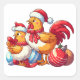 Сute Christmas Chickens, Xmas Farm Chickens Square Sticker