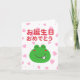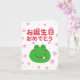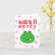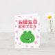 Japanese language birthday card with happy birthday message in Japanese (お誕生日おめでとう, o-tanjoubi omedetou, happy birthday in Japanese) and cute Japanese style illustration. This Japanese greetings card is blank inside for your own message.