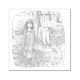 さなむやじ 野外の木の下に座るピンクのウサギと手を引いて歩く女性のイラスト RUBBER STAMP