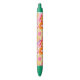ピンク色が愛らしいレトロな黄色やオレンジ色のお花がたくさんの、素敵なボールペン!