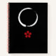 This minimalist black notebook features a white Zen enso circle paired with a red sakura flower.
