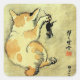 猫と鼠, 暁斎 Cat and Mouse, Kyōsai, Ukiyo-e Square Sticker