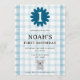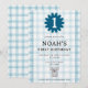 Perfect for baby's first birthday, this invite features an adorable koala bear with a charming watercolor check background.