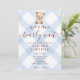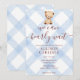 003 Cobalt Blue Teddy Bear Gingham Baby Shower Invitation
