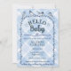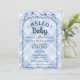 003 Cobalt Watercolor Gingham Birds Baby Shower Invitation