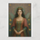 This enchanting artwork features a fairy princess in a muted rose and teal green gown adorned with golden embroidery, set against a purple and teal background with floral motifs. Her serene gaze and shimmering iridescent wings evoke a sense of regal grace and timeless fantasy. Perfect for lovers of fairy tales, fantasy art, and magical elegance. This artwork was generated by AI based on original human concepts.