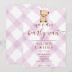 006 Wine Purple Teddy Bear Gingham Baby Shower Invitation