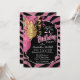 00th BIrthday - Pink & Black Zebra Stripes Invitation