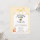 A sweet illustration of a squirrel cradling an acorn delivers added charm to this "A Little Acorn is on the Way" themed baby shower invitation. Rustic cottagecore appleal is added with a watercolor bow & a watercolor gingham background.