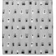 An original abstract repeating pattern made up of a variety of irregular square, rectangle and trapezoid like shapes each further decorated with additional squares, rectangles and spots creating an attractive retro modern design.