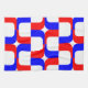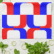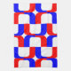 A bold geometric design made up of curved angle shapes in arranged in alternating directions with alternating colours.