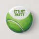 Personalised birthday Tennis ball button tells everyone it's your day. Part of a fun and bold green Tennis design party supply set of 12, essential for your sports themed party. Party on!