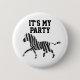 Personalised Birthday Zebra Button tells everyone it's your day. Part of a fun and bold black and white Tiger design party supply set of 12,  essential for your wild themed party. Party on!