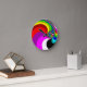 The clock did not take as long to arrive as I thought it might and was extremely well packaged. I didn't do the measurements so I didn't realize it is a little smaller than the average clock but that does not matter (just make sure you check if that's important to you).It is really nifty! It seems very solid and well made not flimsy at all. It has been going well and has kept good time in its few weeks on my wall. Nice product. Gets noticed too! Nicer in real life than the picture but true to the picture