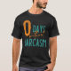 This black t-shirt features a humourous design with the number "0" prominently displayed in orange, followed by the teal text "DAYS without" and "SARCASM." The playful typography emphasizes a constant state of sarcasm.