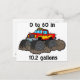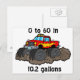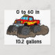 A cartoon of a truck with big tires tearing up the dirt. The words 0 to 60 in 10.2 gallons surrounding it. Lets at least try to conserve our gas reserves.