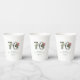 An elegant and simple tropical 70th birthday design that is sophisticated and classy, this paper party cup has palm fronds, hibiscus, fig blossoms, anthuriums, bird of paradise, and orchids adorn the number "70" with beauty and elegance for this special milestone birthday celebration. The text template can be personalised with the guest of honour's name.
