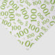 This design is a green and white, random number pattern with milestone number 100 repeated in varied sizes and angles in an all-over print.  Use this 100th birthday theme to celebrate your favourite centenarian's big day, and  for all occasions or celebrations where you are featuring the number one hundred.  The design is fun for gift wrapping, party decorations, and craft projects.