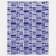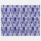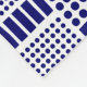 An original hand drawn abstract pattern design made up of arrangements of dots in a variety of sizes interspersed with solid rectangles and lines.