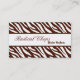 These 100 2x3.5 Sized White and Brown Zebra Print Pattern business card is perfect for any business and is completely customisable. It is printed on smooth, matte 88lb white card stock with full colour two sided printing! 100 cards per QTY of 1.