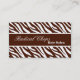 These 100 2x3.5 Sized White and Brown Zebra Print Pattern business card is perfect for any business and is completely customisable. It is printed on smooth, matte 88lb white card stock with full colour two sided printing! 100 cards per QTY of 1.