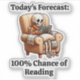 Embrace your perfect reading weather with the "Today's Forecast: 100% Chance of Reading" funny bookish book lover sticker! This playful design is ideal for bibliophiles who love cosy days spent with their favourite books. Perfect for decorating laptops, journals, or water bottles, this durable sticker adds a fun and literary touch to your belongings. A thoughtful gift for bookworms who know there's always time for a good read. Let your passion for books shine with this witty and stylish design