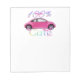 Notepad with a pink car and it say 100% Cutie.