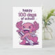 Cute design featuring an axolotl wearing a backpack and holding a big pen with the quote "Happy 100 days of school". Happy 100th day of school or kindergarten.