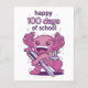 Cute design featuring an axolotl wearing a backpack and holding a big pen with the quote "Happy 100 days of school". Happy 100th day of school or kindergarten.