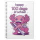 Cute design featuring an axolotl wearing a backpack and holding a big pen with the quote "Happy 100 days of school". Happy 100th day of school or kindergarten.