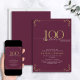 100 & Fabulous Burgundy White & Gold Birthday Invitation