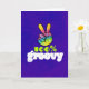 A funky cool birthday greeting card with a typography design containing a rainbow peace sign with fingers raised up in a V. Text says 100% groovy in a funky font. Psychedelic hippie theme design. Set on a dark toned acid purple colour background. Personalise the inside message with the name of your recipient.