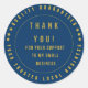 Elevate your business presentation with our Guaranteed Satisfaction,Quality Guaranteed Classic Round Sticker,Thank You round Sticker. This modern thank you sticker features a sleek blur background with gold accents, adding a touch of sophistication to your packaging. Personalise it by adding your website or other details to create unique business box labels. The rich blue and shimmering gold colour scheme exudes luxury and appreciation. Make a lasting impression on your customers with this stylish sticker, emphasizing your commitment to satisfaction and quality. Say "Thank You" in style and set your business apart with this exquisite round sticker.