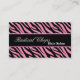 These 100 2x3.5 Sized Light Pink Black Zebra Print Pattern business card is perfect for any business and is completely customisable. It is printed on smooth, matte 88lb white card stock with full colour two sided printing! 100 cards per QTY of 1.
