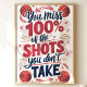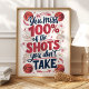 Ignite your inner champion with this powerful basketball-themed motivational poster. Featuring the iconic quote "You miss 100% of the shots you don't take" in bold typography, this print is a dynamic reminder to embrace challenges, take risks, and never give up on your goals. Perfect for adding a touch of inspiration to any sports enthusiast's home, office, or gym.