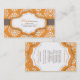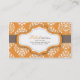 These 100 2x3.5 Sized beautiful Orange Damask Lace Print Fabric Leaves Floral Foliage Nature Nail Technician business card is perfect for any business and is completely customisable. It is printed on smooth, matte 88lb white card stock with full colour two sided printing! 100 cards per QTY of 1.