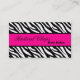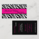 These 100 2x3.5 Sized Hot Pink Black Zebra Print Pattern business card is perfect for any business and is completely customisable. It is printed on smooth, matte 88lb white card stock with full colour two sided printing! 100 cards per QTY of 1.