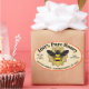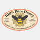 Queen Bee graphic in the centre medallion of a colourful sticker, surrounded by a geometric background pattern. Personalise the text with the type of honey, business name, address and net weight of your produce. These stickers fit large, quart and half gallon size mason jars, round and hexagonal glass containers.