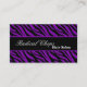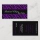 These 100 2x3.5 Sized Purple Black Zebra Print Pattern business card is perfect for any business and is completely customisable. It is printed on smooth, matte 88lb white card stock with full colour two sided printing! 100 cards per QTY of 1.