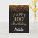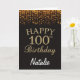 100th Birthday Black and Gold Glitter Card with personalized name. For further customization, please click the "Customize it" button and use our design tool to modify this template.