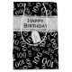This modern design is a black and white random number pattern with a white milestone number 100 repeated in varied sizes and angles printed on a black background. There is a banner with, "Happy Birthday," and a printed white gift tag with a name and message; both have text templates. You can easily personalise the text with your own words, name, initial or monogram.