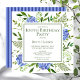 This blue hydrangea 100th birthday party/bunch invitation is whimsical and stunning! With its watercolor multi-hued blue hydrangeas, wispy natural greenery, and coordinating blue striped back it is perfect for any young woman you love. By selecting Personalise this template and typing in your information you can see your gorgeous invitations in seconds!