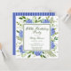 This blue hydrangea 100th birthday party invitation is whimsical and stunning! With its watercolor multi-hued blue hydrangeas, wispy natural greenery, and coordinating blue striped back it is perfect for your loved one who is turning 100. The script font is modern yet classic! By selecting Personalise this template and typing in your information you can see your gorgeous invitations in seconds!