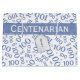 This design is a blue and white random number pattern with the blue milestone number 100 which is repeated in varied sizes and angles then printed on a white background. There is a ribbon banner with, "Centenarian," and a digital gift tag printed on the front for your name and message; both have text templates. You can easily personalise the text to your own words, name, or monogram.