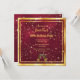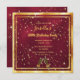 A trendy, modern 100th birthday party invitation card for a woman. A classic burgundy background, with faux gold frame and flutes, glass and bubbles, golden coloured letters. The burgundy colour is uneven. Templates for your party information.