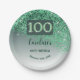 100th Birthday Chic Falling Green Glitter Paper Plate