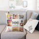 A unique gift for a womans 100th birthday, celebrating her life with a collage of 8 of your own photos, pictures. Personalise and add her name, age 100 and a date. A chic white background. Grey and black letters and numbers. The name is written with a modern hand lettered style script.